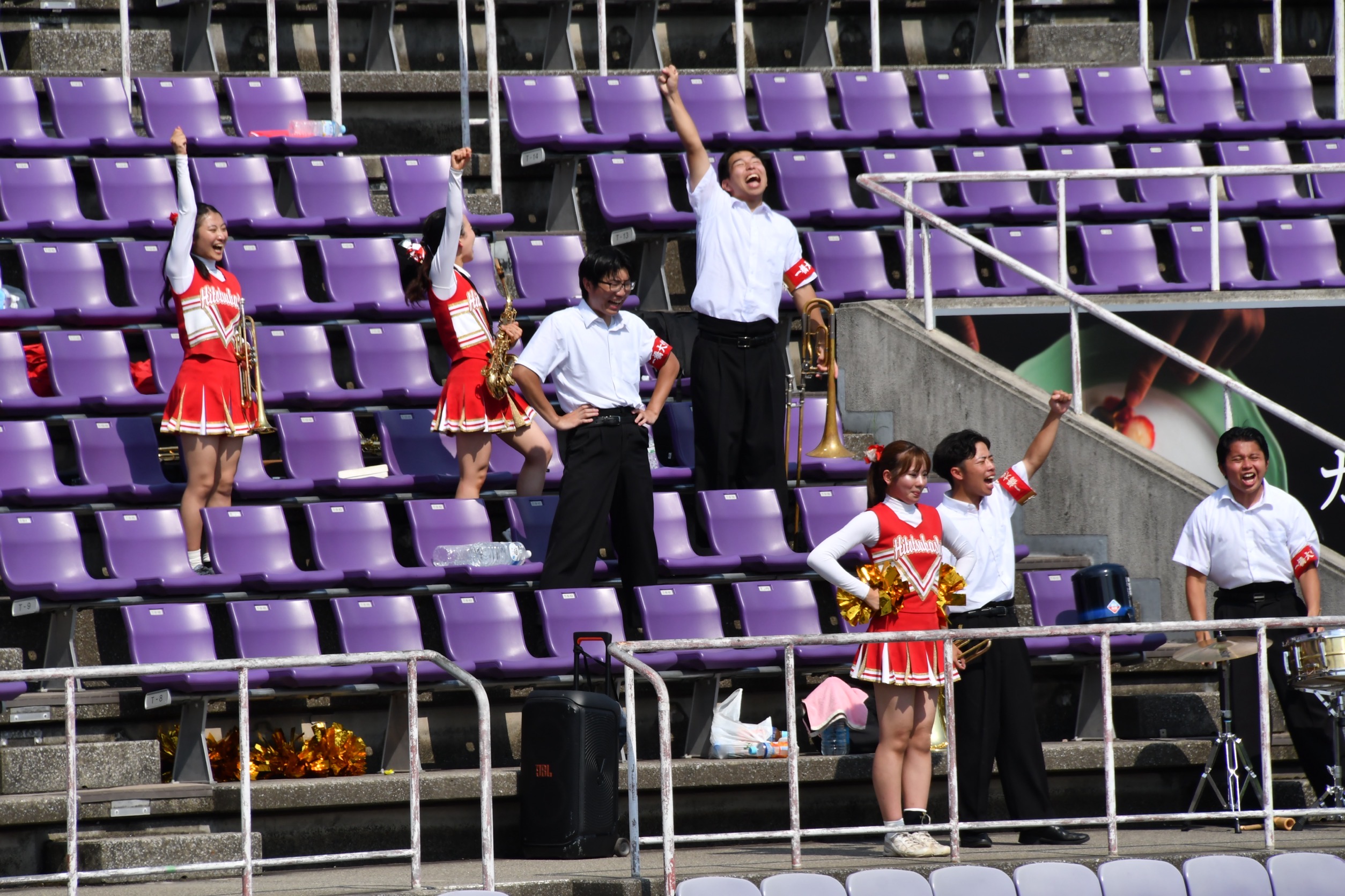 今年度は、灼熱の古都、京都での開催でした。さらに、僕たちが陣取ったのは日が照り続ける三塁側。まさに最高にホットな気候の中、応援がスタートしました。