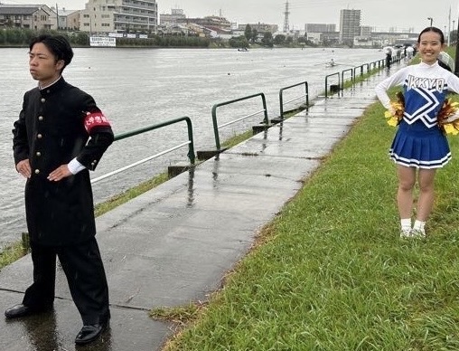 庄司さんへの感謝の言葉もかけ、秋季広報補佐としての苦悩・葛藤の連続の日々を皆さんにお届けできたので、以上で部員日記を終わりたいと思います。下の写真は数少ない、庄司さんと自分のツーショットです。おそらく、土砂降りの中のボート応援です。